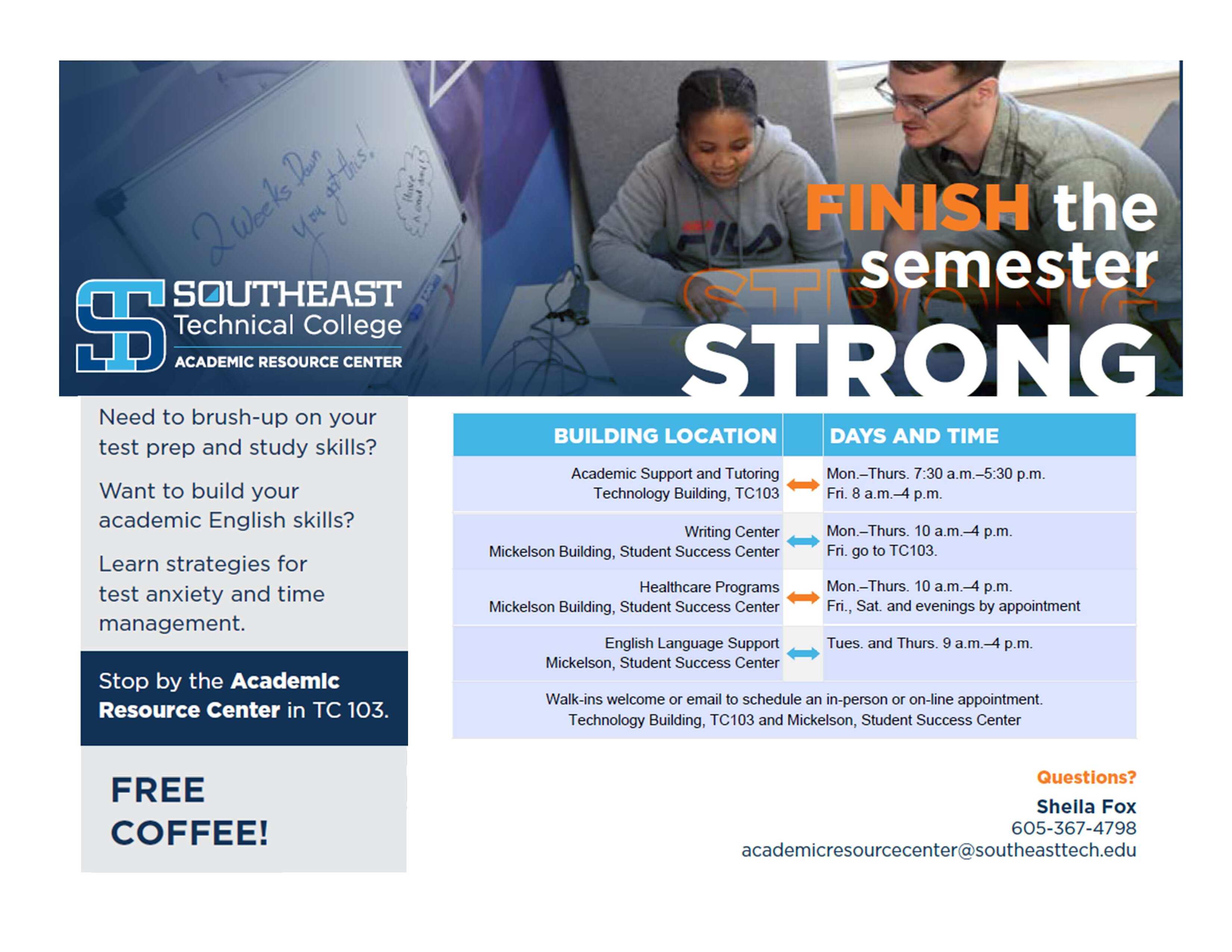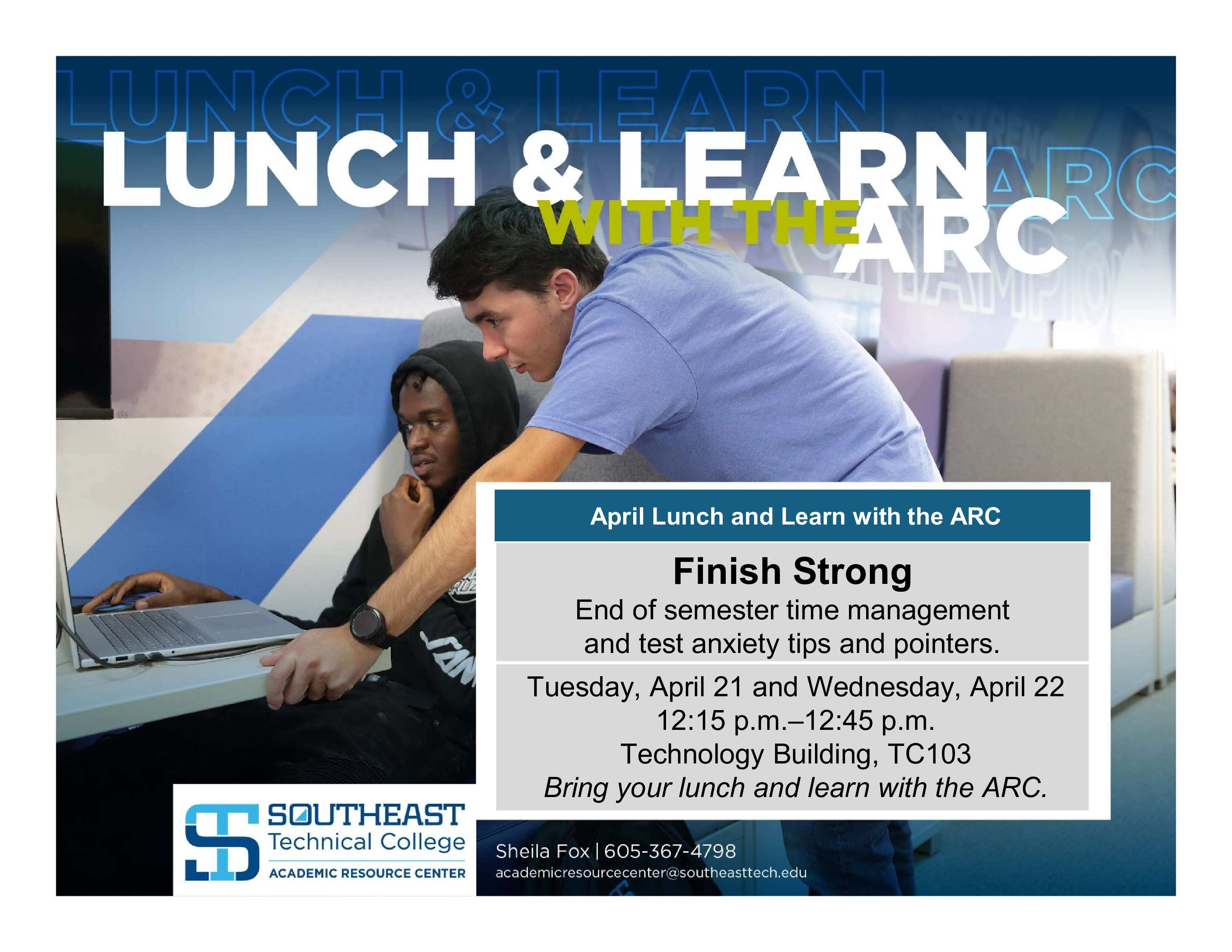 Sometimes, a class or assignment can stand in the way – but, it doesn’t have to. The ARC offers Southeast Tech students the academic assistance they need to excel with free one-on-one and online tutoring provided by faculty, professional and peer tutors.