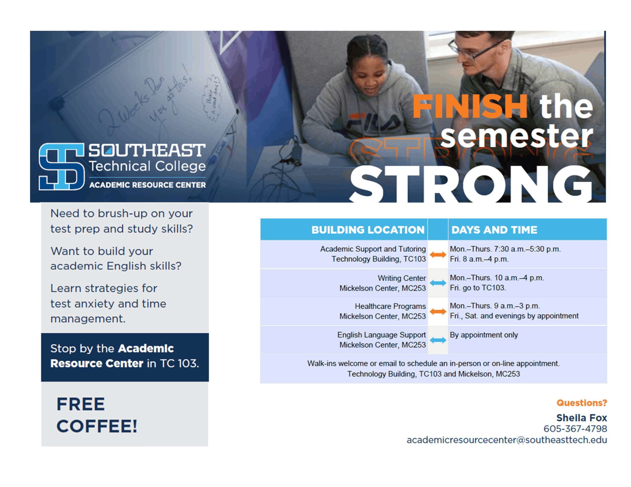 Sometimes, a class or assignment can stand in the way – but, it doesn’t have to. The ARC offers Southeast Tech students the academic assistance they need to excel with free one-on-one and online tutoring provided by faculty, professional and peer tutors.